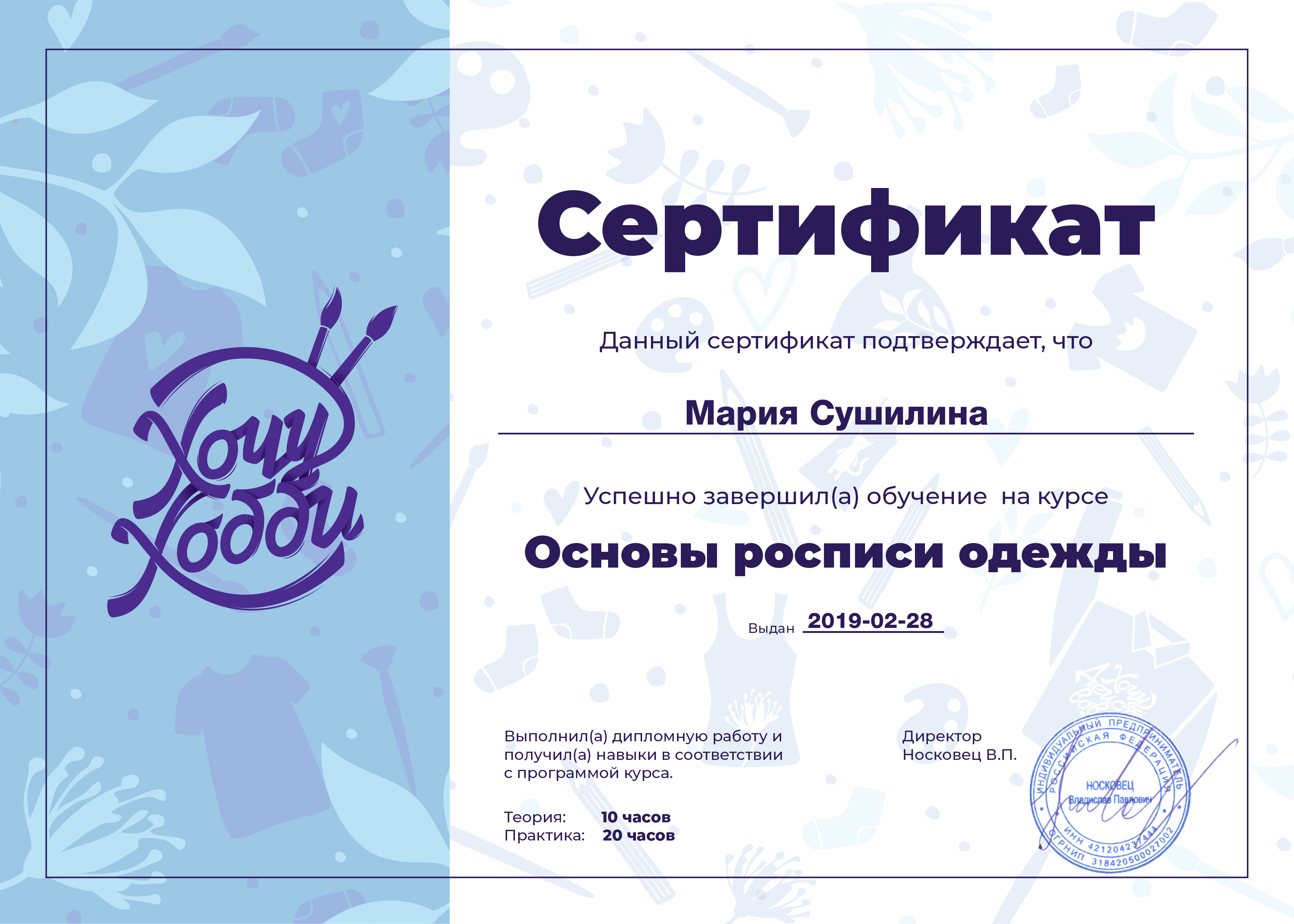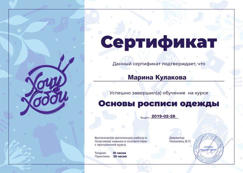 "Основы росписи одежды", наша команда постаралась сделать его максимально интересным и полезным. Не забудьте прикрепить к отзыву фотографии своих обновленных вещей, нам очень интересно посмотреть на ваши достижения.