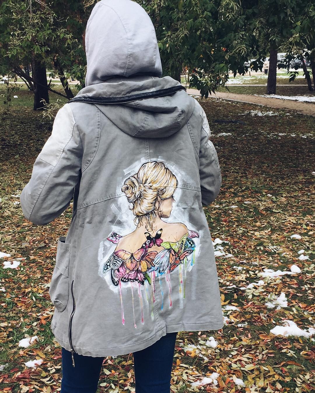 - Перенесение эскиза на джинсовую куртку