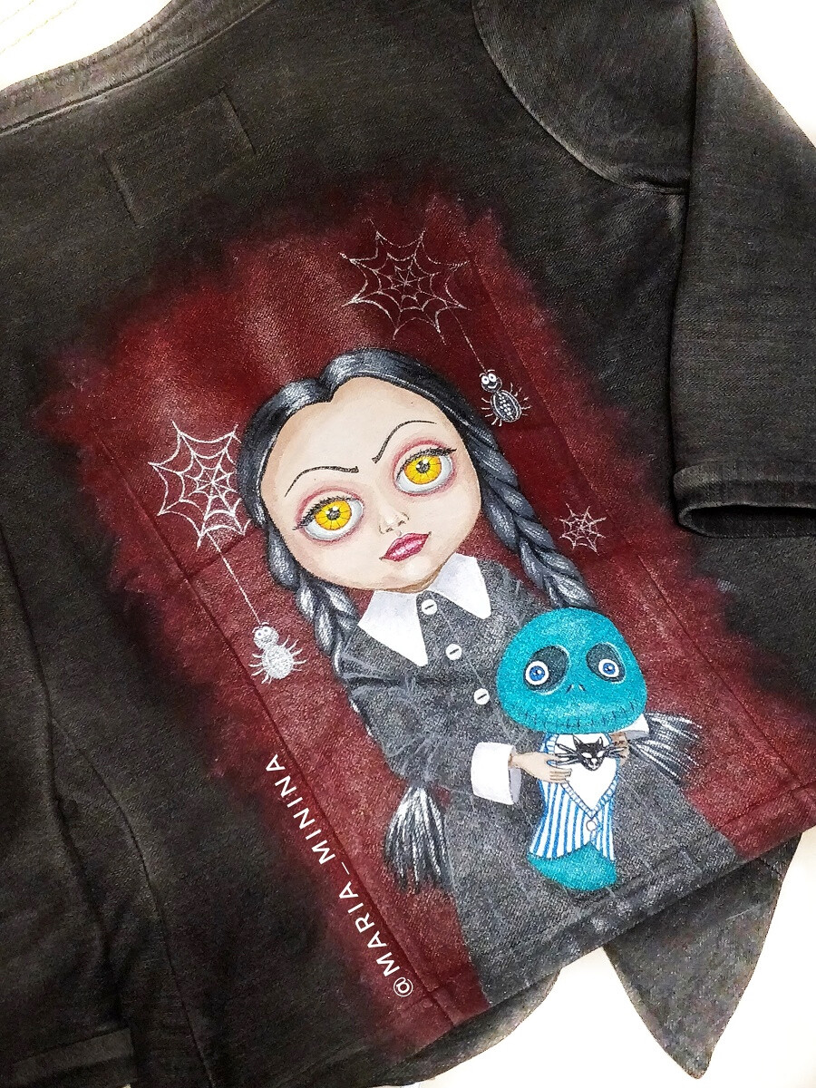 - Роспись джинсовки (работа в цвете, контуры и блики)