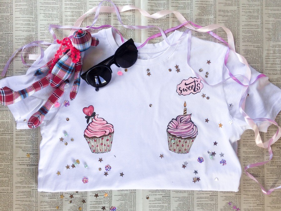- Подготовка белой футболки к росписи